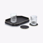 Le plateau Octogone est une création laquée disponible en trois tailles. Inspirée par la pampille octogonale rouge, signature emblématique de Baccarat, une série d’accessoires en laque raffinée vient agrandir la collection Octogone. Le plateau est méticuleusement confectionné à la main grâce à un savoir-faire ancestral. Sa surface brillante capte la lumière et met en valeur les pièces en cristal de la Maison.
