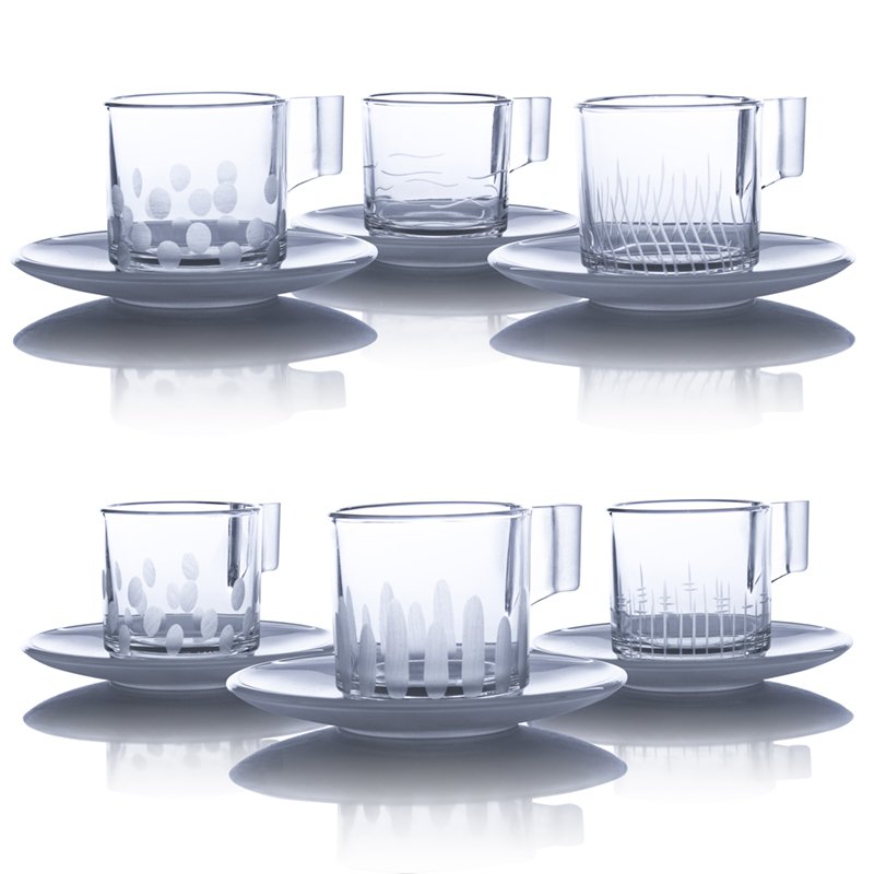 TASSES CAFÉ CRISTAL, Coffret espresso de 6 tasses et sous-tasses, taillées main. Un sablage artisanal est réalisé sur chaque verre, 6 motifs différents. Une fabrication Française, réalisée près de Sarrebourg. Set expresso cristal taillé. Parfait pour déguster votre café, les tasses à expresso présentent un taillage réalisé à la main. Présenté dans un coffret de 6, voici de quoi sublimer l’art unique de la dégustation d’un expresso. Un cadeau à offrir absolument à ses amis épicuriens.