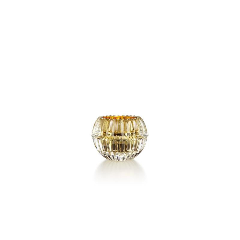 MILLE NUITS PHOTOPHORE OR BACCARAT, Une superbe taille en biseaux assure au photophore Mille Nuits un miroitement féerique en toutes circonstances, même sans bougie. La forme en corolle ajoute une note très poétique. Photophore Mathias Baccarat, Photophore taillé cristal Baccarat.