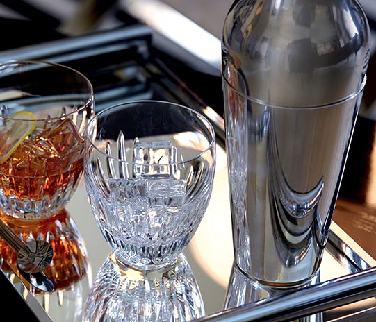 MASSÉNA GOBELET BACCARAT, Le gobelet Masséna se reconnaît à sa silhouette de tonnelet et au toucher inimitable d’un motif très élaboré et finement ouvragé. Le contraste est saisissant avec la ligne pure de la partie supérieure. Sa ligne raffinée et ses qualités prismatiques en font l’hôte privilégié des moments festifs ou des soirées d’exception. Le gobelet Masséna s’inscrit dans une collection d’accesssoires de bar et de table comprenant des verres à vin, des verres à cocktail et une carafe, tous reconnaissables aux mêmes caratéristiques texturales et décoratives.