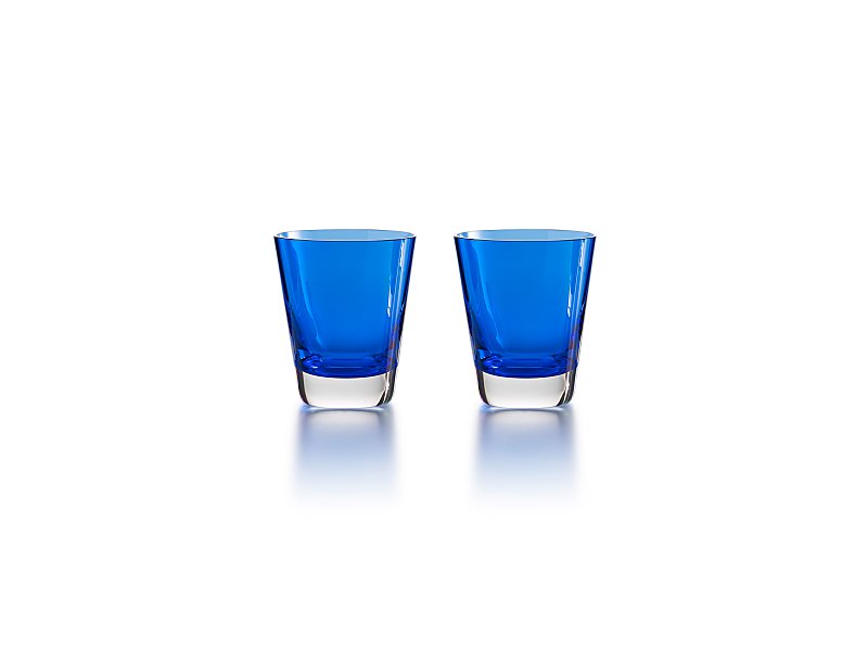 COFFRET 2 GOBELETS MOSAÏQUE BLEU BACCARAT, Les gobelets Mosaïque apportent une note de couleur raffinée aux tables de fête. De fabrication artisanale traditionnelle, ces verres soufflés bouche de taille moyenne ont une ligne épurée d’une parfaite élégance. Gobelets cristal bleu Baccarat.