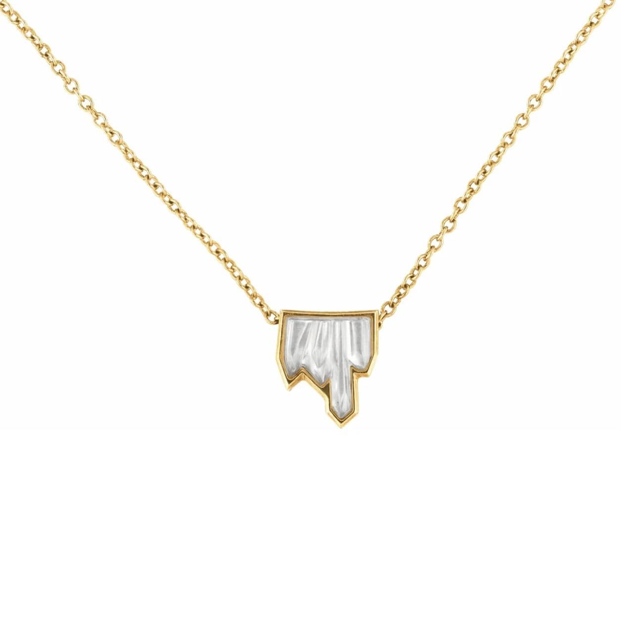 Délicat et lumineux, ce collier dévoile un cristal discret au bout d’une fine chaîne, comme une touche de lumière posée sur la peau. Lalique s’est inspiré des minéraux façonnés par les siècles pour recréer leur beauté naturelle dans la collection Terramineral. Prouesse de fabrication, la fine monture de métal épouse parfaitement les contours délicatement ciselés du cristal, révélant ses reliefs détaillés.