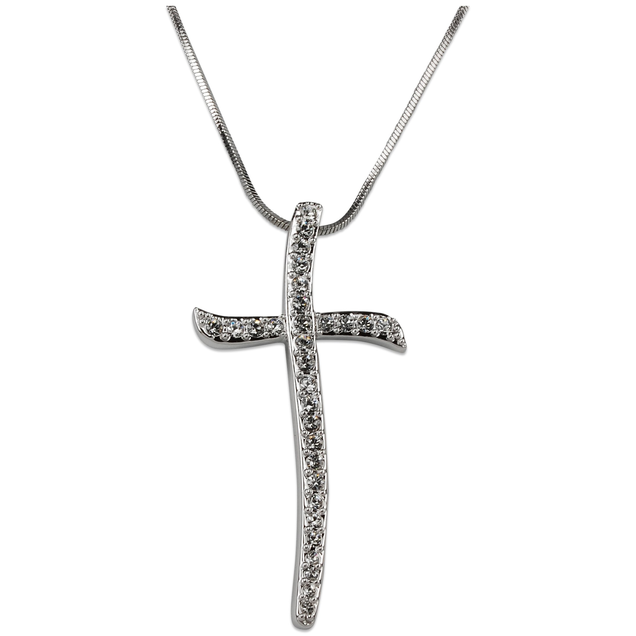 PENDENTIF CROIX CRISTAL, Pendentif croix grand modèle en cristal et argent rodhié. Chaine de 40 cm réglable.