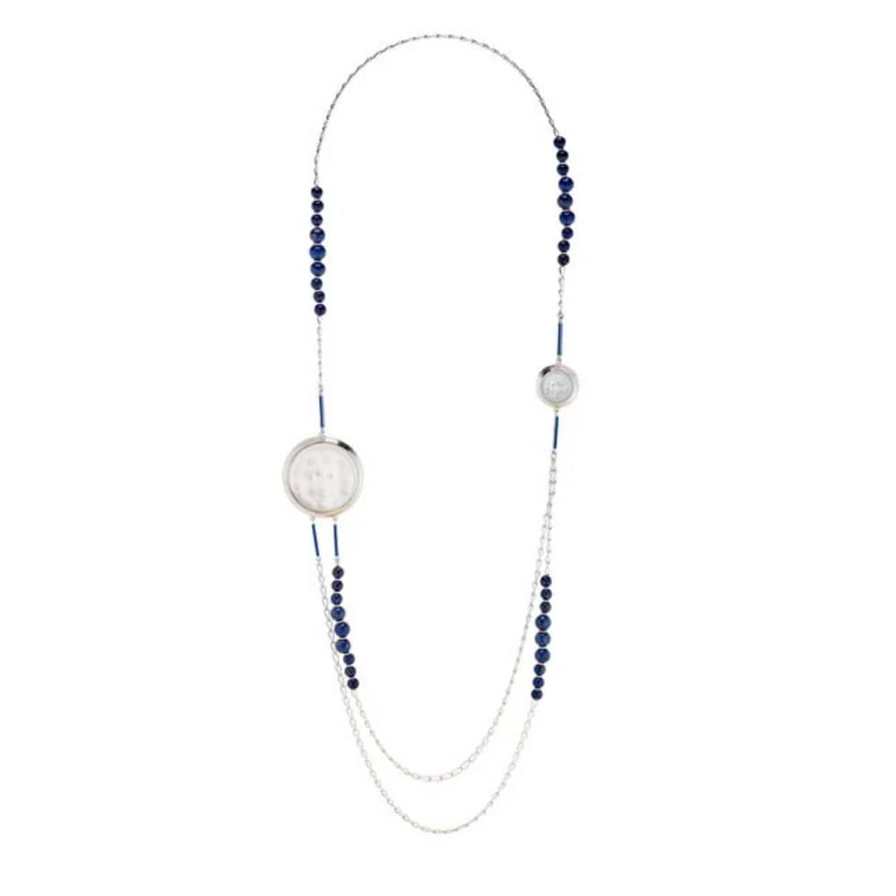 Découvrez le Sautoir Aréthuse rond Lalique, plaqué or jaune 18 carats ou argent.