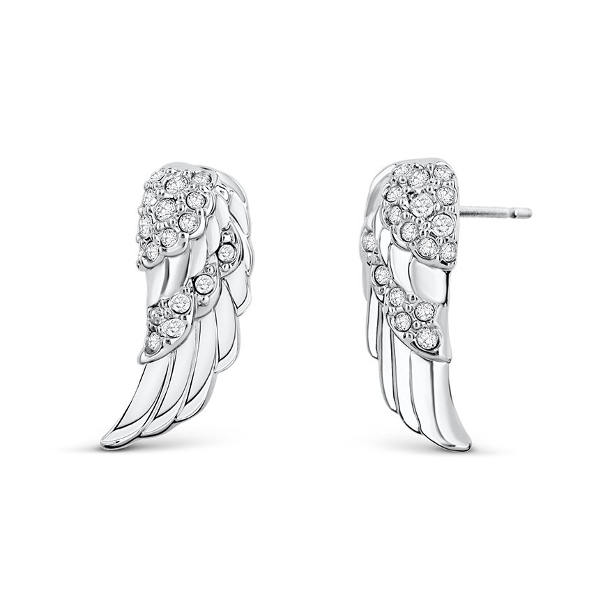 BOUCLES OREILLES AILES CRISTAUX SWAROVSKI®, Ces boucles d’oreilles sophistiquées ont été fini en rhodium poli avec cristaux Swarovski, porteuses d’espoir, de liberté et de protection.
