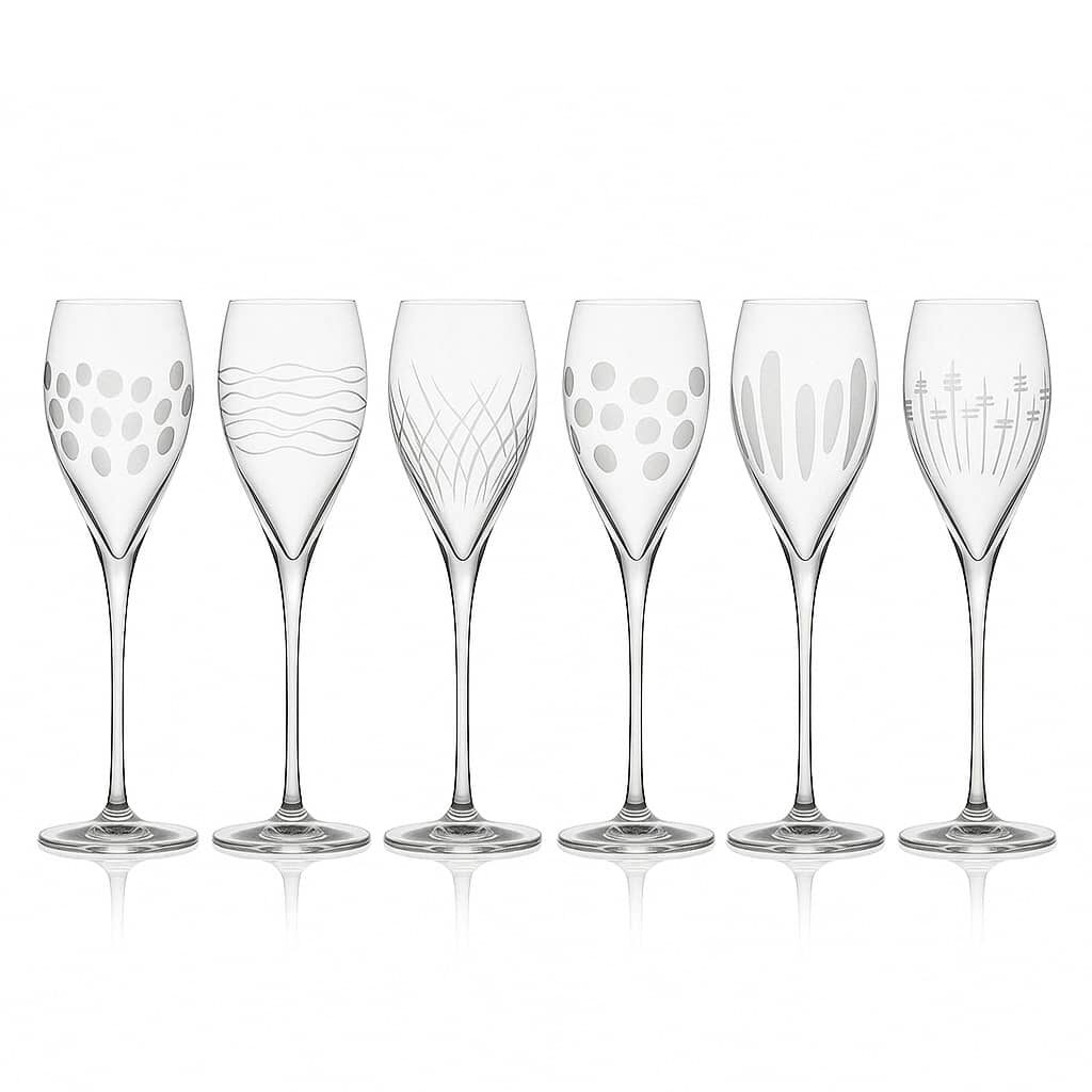 Découvrez le coffret de 6 flûtes en cristal artisanal prestige. C’est le verre classique par excellence. La sobriété de la ligne reste une valeur sûre parmi cette collection. La flexibilité de la jambe rend le verre encore plus solide. Les 6 décors différents donnent aux verres une touche plus « moderne ».