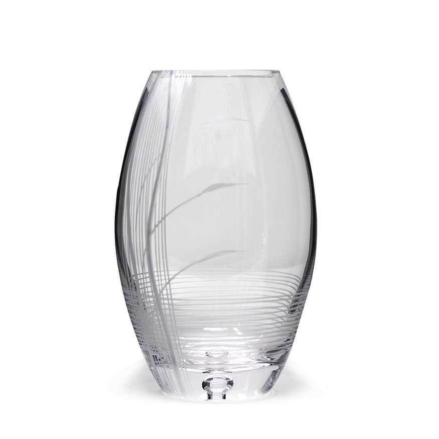 VASE OBUS CRISTAL OCÉAN, Vase en cristal artisanal, réalisé et gravé par un maître verrier. Plongez dans un univers maritime grâce à une taille unique harmonieusement disposée sur le cristal clair. Sa taille en forme d’obus est parfaite pour présenter une création florale.