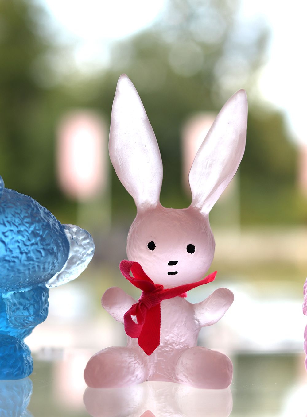 PINPIN ROSE LAPIN SERGE MANSAU DAUM, Daum renouvelle sa collaboration avec Serge Mansau et propose le Pinpin, un lapin funny qui reprend les lignes du Doudours Daum. Figurine lapin pâte de cristal Daum, Lapin Serge Mansau.