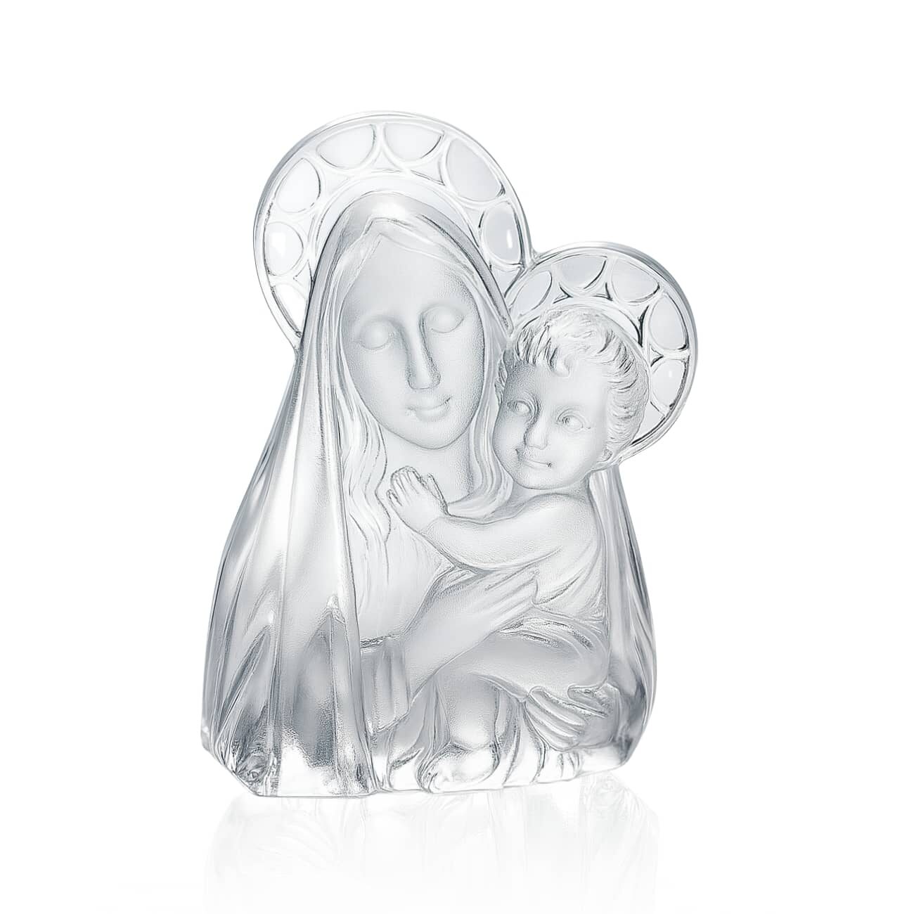 SCULPTURE VIERGE À L’ENFANT CRISTAL, La pureté du cristal illumine cette sculpture, un incontournable à déposer aussi bien dans votre maison que dans une chapelle. Il émane de cette statuette une douceur caractéristique du cristal.