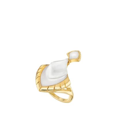 Pour sa nouvelle collection de bijoux Paon, Lalique livre une interprétation graphique et épurée de cet animal totem. L’éventail hypnotique de plumes irisées se décline en cristal bleu intense sur argent massif tantôt souligné de laque verte, ou en cristal incolore nacré sur plaqué or 18 carats.