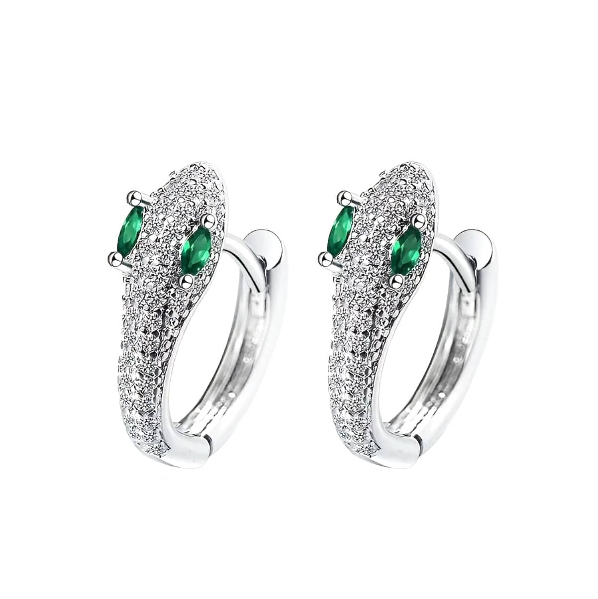 Ces boucles d’oreilles en forme de serpent s’enroulent avec grâce pour encadrer le visage d’une touche de mystère. Serties de cristaux scintillants et ponctuées par des yeux en émeraude hypnotique, elles incarnent un luxe discret. Parfaites pour les occasions spéciales ou comme éclat quotidien, elles ajoutent une touche d’audace à n’importe quel ensemble.