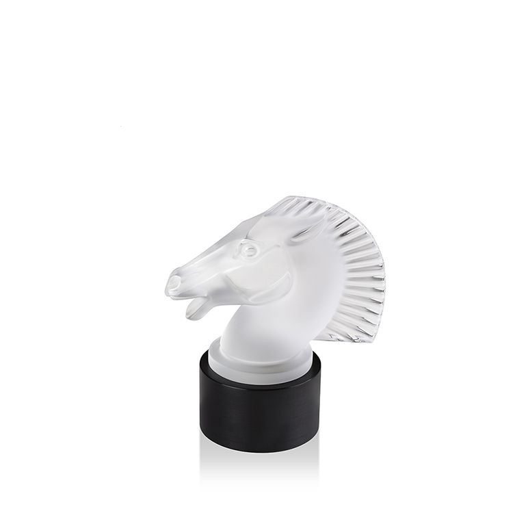 Découvrez le cheval Longchamp Lalique. sûrement l’une des plus belles mascottes de René Lalique. Lalique souffle un vent de modernisme à travers une nouvelle interprétation des mascottes Lalique. Un socle lumineux permet alors de mettre en valeur le cristal satiné repoli.