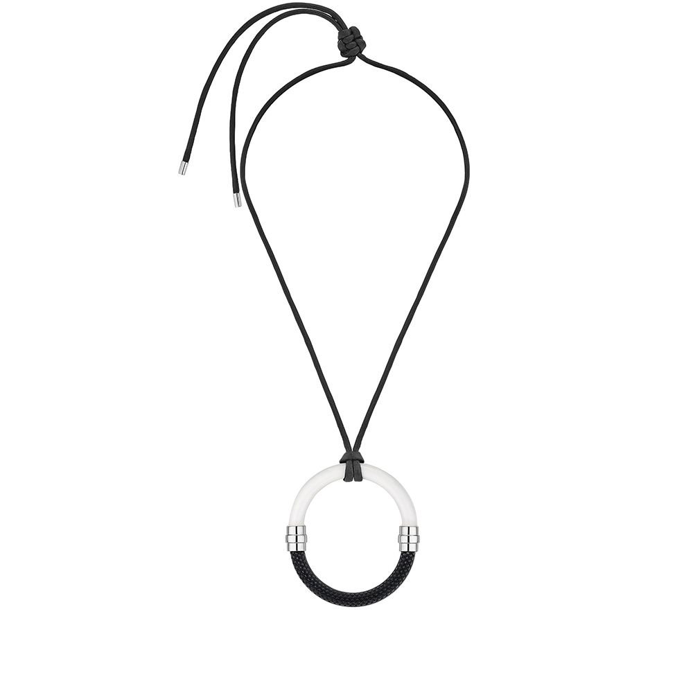 Découvrez le pendentif 1927 Lalique. Une combinaison avant gardiste de cristal noir satiné-repoli et de résine blanche pour un bijou moderne. Un style affirmé témoin de l’Art Déco, voici un pendentif qui impose un vrai style !