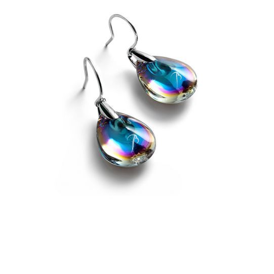 PSYDÉLIC BOUCLES D’OREILLES BACCARAT, Témoignage du savoir-faire des maîtres artisans, les très fines couches d’oxydes de métal confèrent au bijou une beauté fascinante. Les boucles d’oreilles Psydélic existent en cristal clair pur, parfaitement translucide, cristal scarabée noir (et des nuances mutlifacettes de violet, bleu et vert), et rouge, couleur emblématique de la marque, aux nuances irisées violettes. Le cristal en forme de « goutte », caractéristique de la collection Psydélic, se retrouve dans les bagues, les colliers, les pendentifs et les boucles d’oreilles clips.