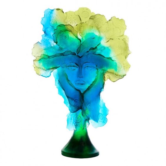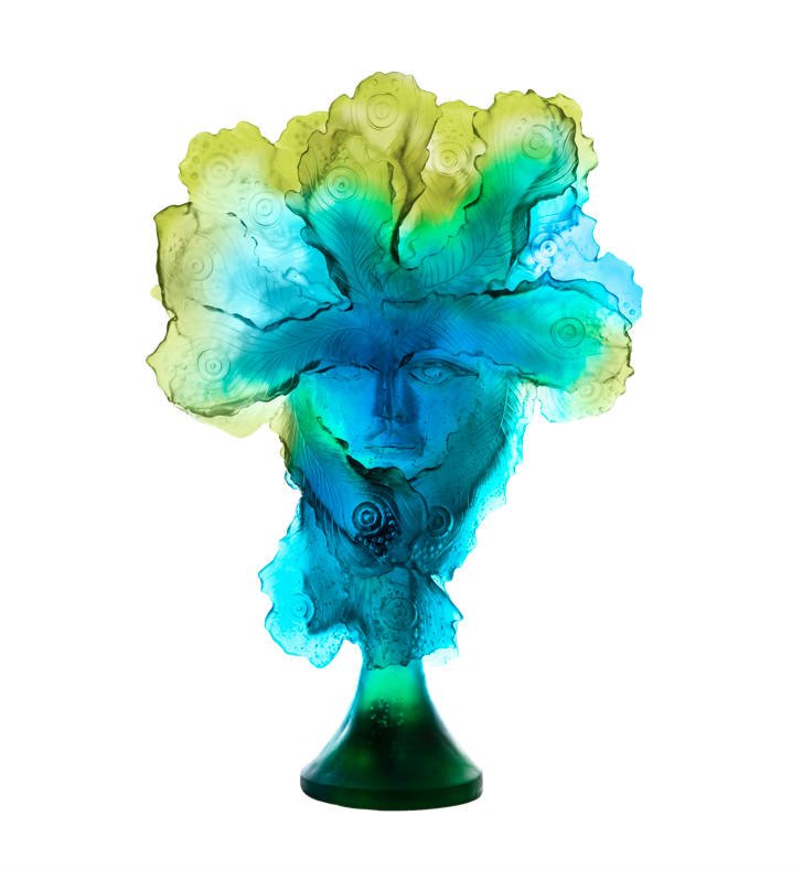 PANOPTES BLEU JAUNE DAUM, Édition d’art réalisée par l’artiste George Saulterre, édition limitée à 8 exemplaires. Magnifique sculpture, le visage artistique est ainsi sublimé par la pâte de cristal. Le visage est présent au recto et verso. Des nuances de couleurs uniques grâce au procédé de la cire perdu. L’artiste nous fait voyager à travers ces portraits très énigmatiques.