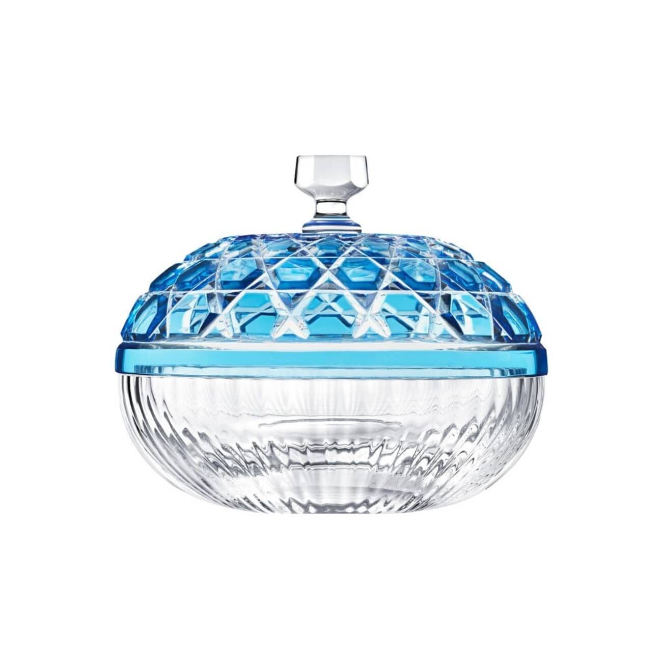 Découvrez la boîte petit modèle bleu clair Royale Saint-Louis. Fruits de commandes spéciales des cours royales, les premiers lustres apparaissent chez Saint-Louis dès le milieu du XIXe siècle. Depuis, la manufacture ne cesse de réviser ses classiques pour proposer, depuis 2015, la collection Royal. Elle offre l’exclusivité de la personnalisation (tailles, décors, couleurs). Un lustre, plus 50 000 possibilités.