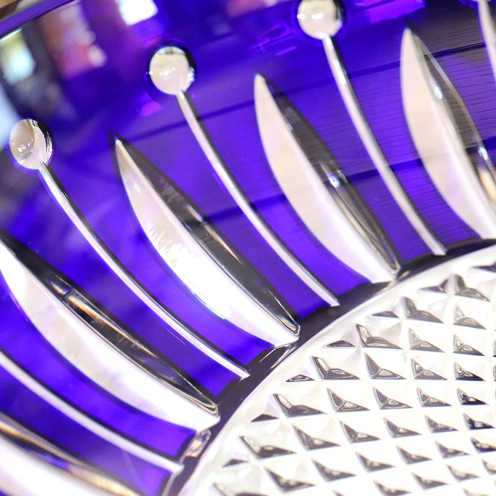 Tommy représente à lui seul la magie des verriers Saint-Louis : la beauté de la couleur accompagnée d’un concentré des différentes techniques de tailles, pour un résultat audacieux.