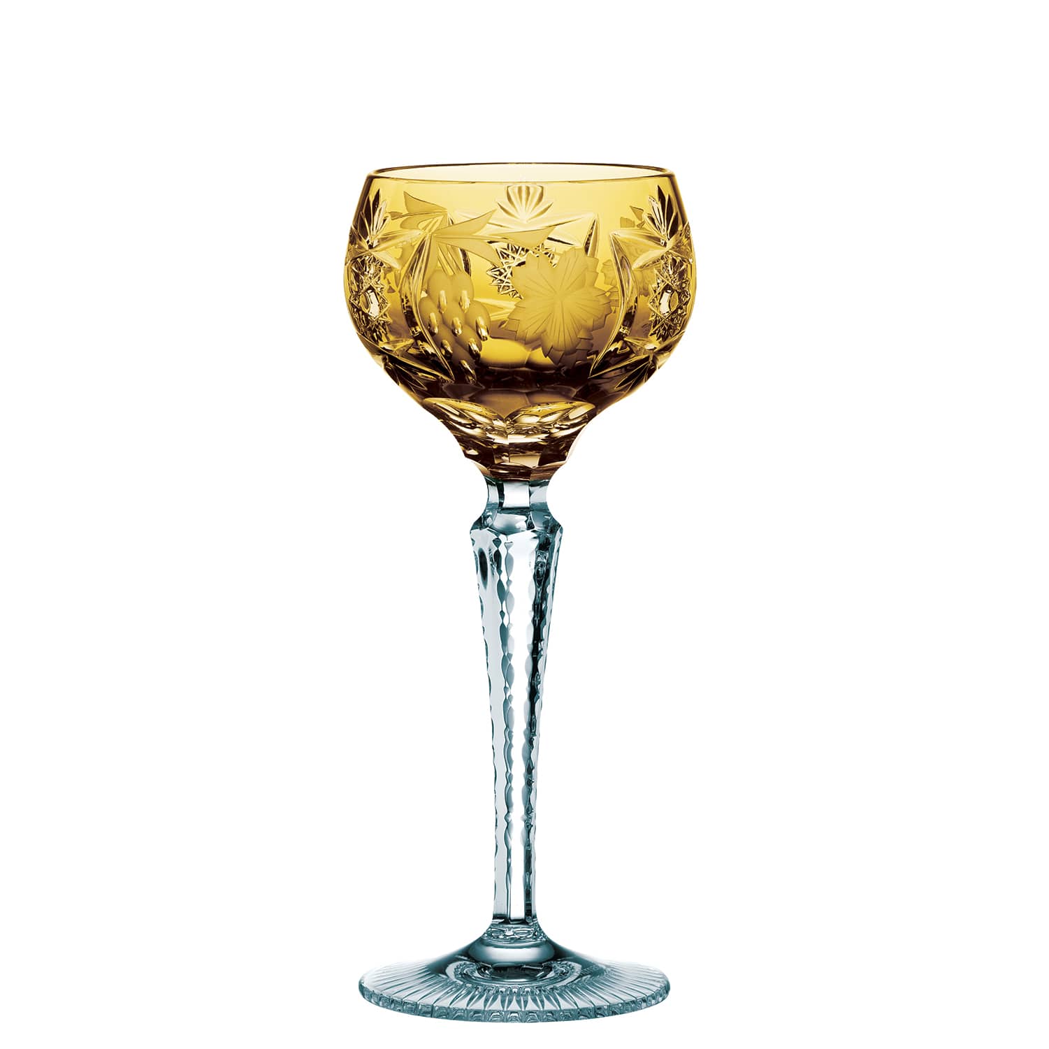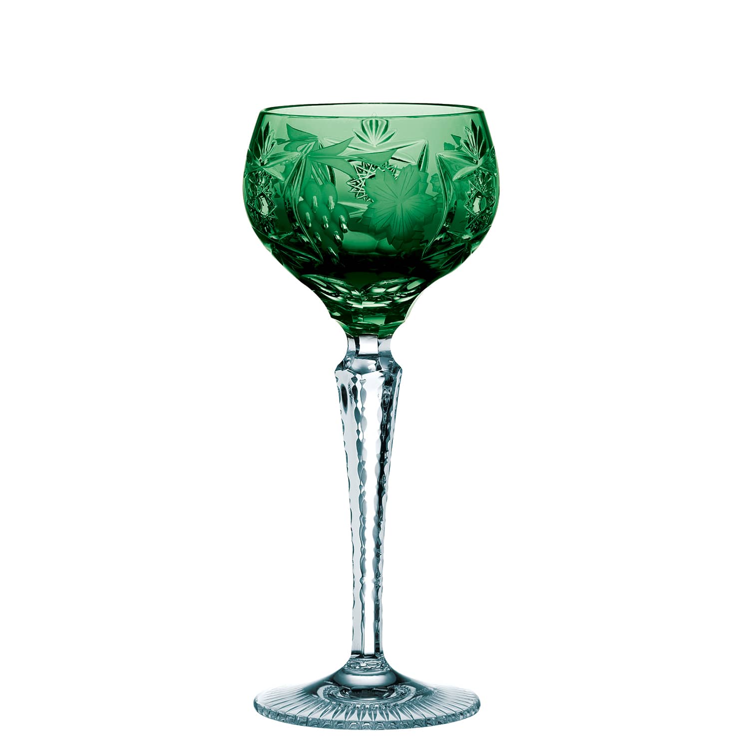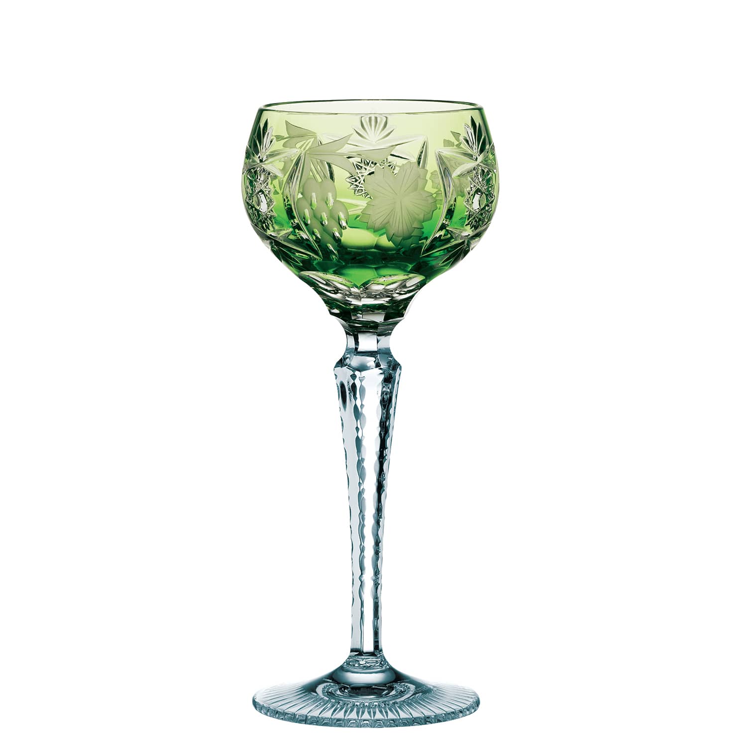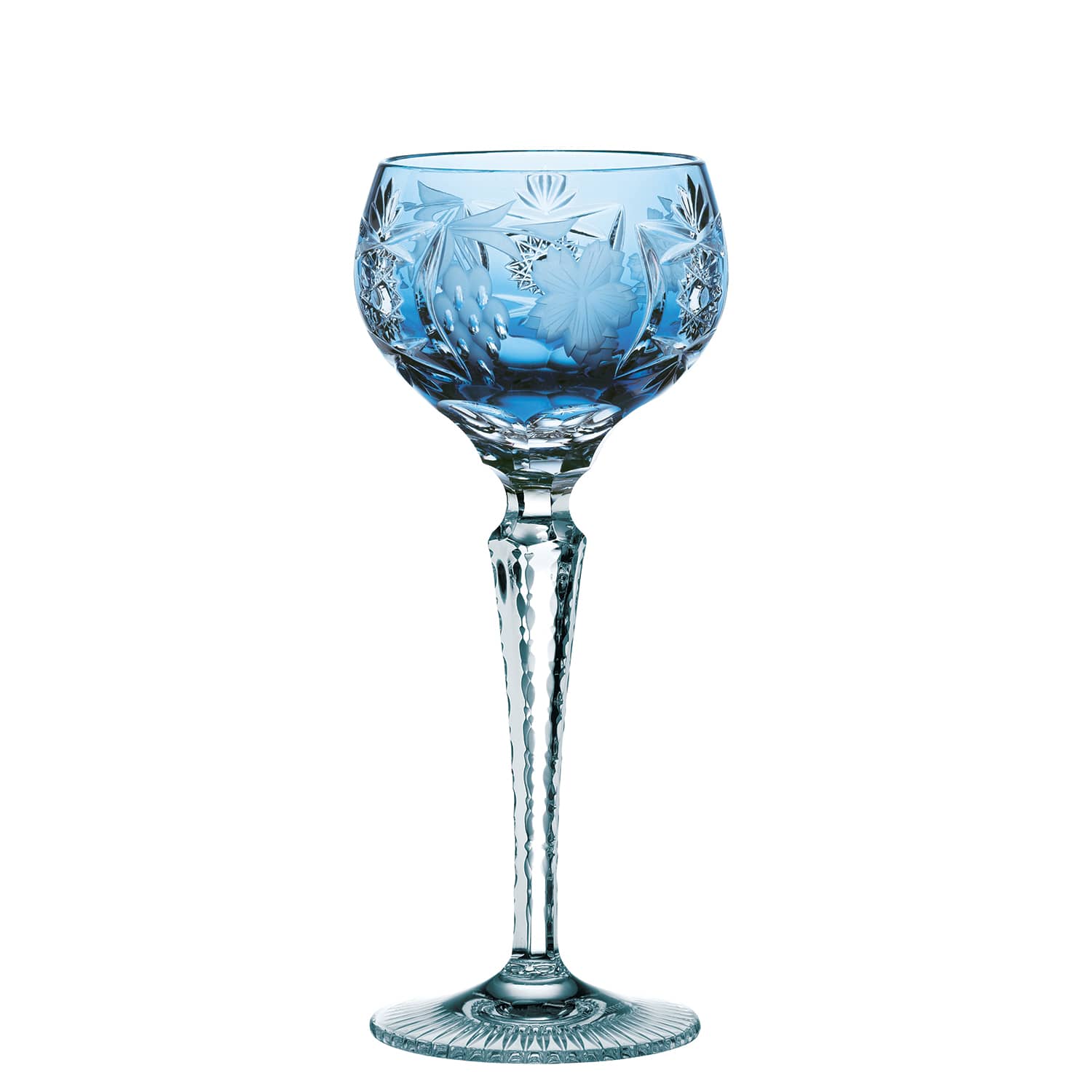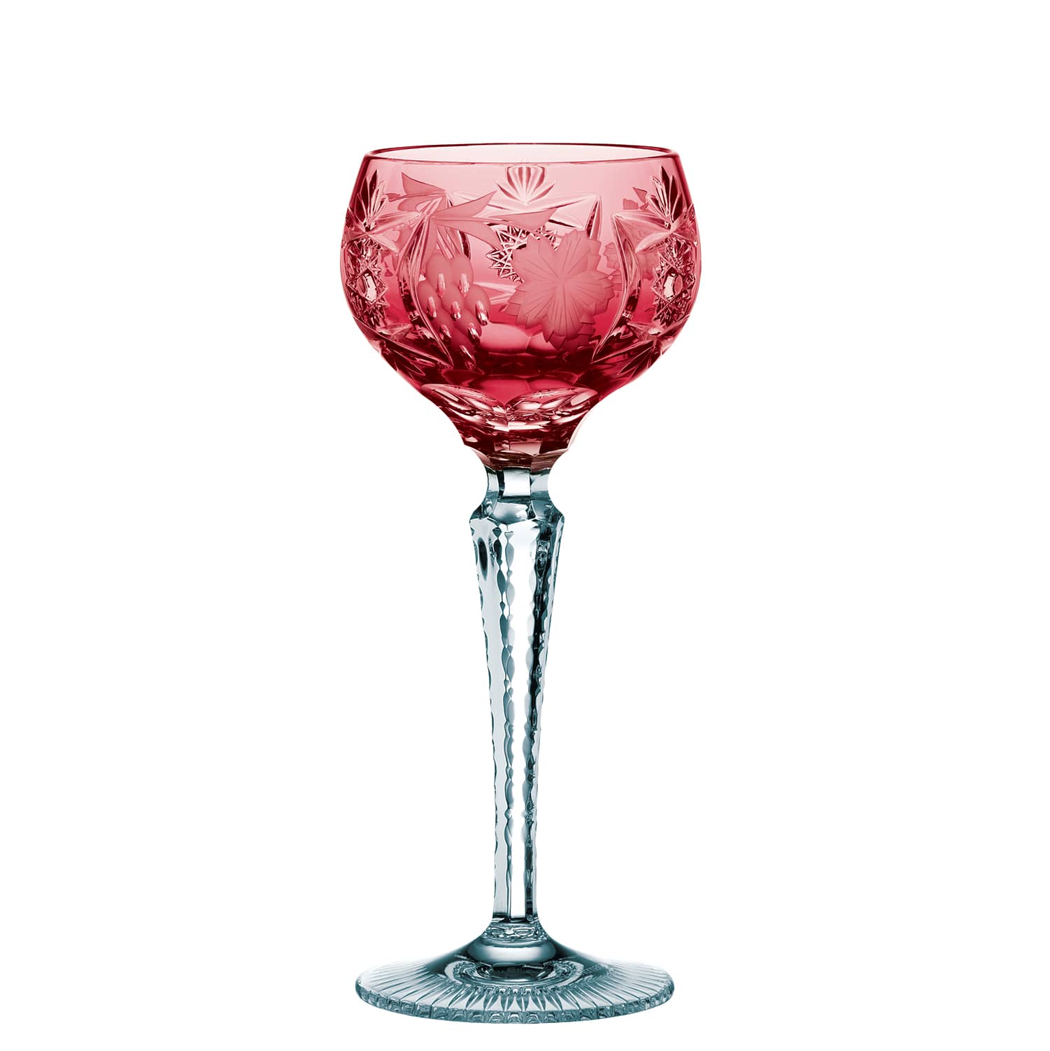 Découvrez cette série de six verres à vin du Rhin, taillés à la main, doublés couleur.