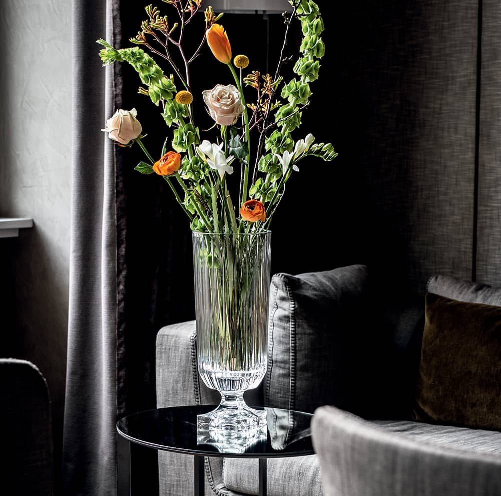 Robustes, lourds et stables, les vases MINERVA offrent suffisamment d’espace pour accueillir de généreux et grands arrangements floraux. Disponibles en deux tailles (40 ou 32 cm de haut), et emballés dans une jolie boîte de présentation, ces vases en cristal spéciaux font également office de cadeaux élégants.