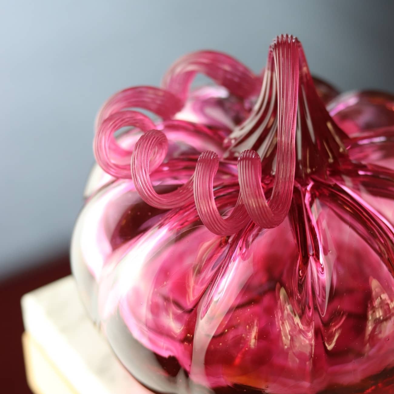 Découvrez la citrouille décorative cristal de Lorraine fuchsia.
