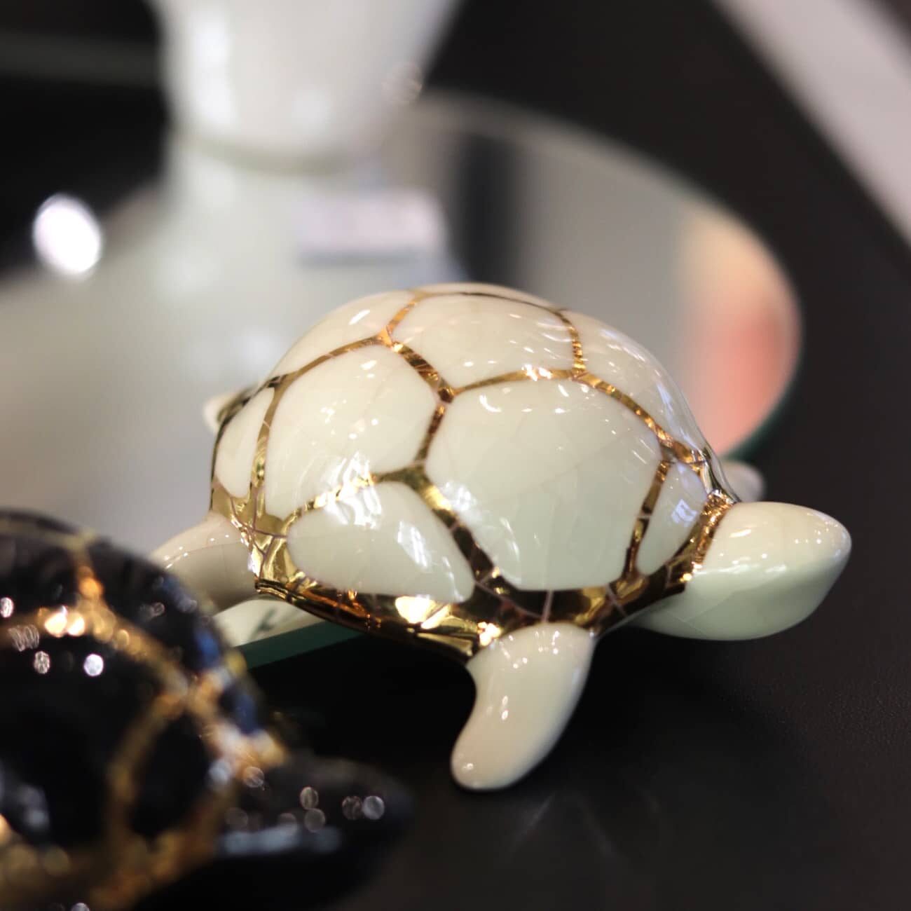 Découvrez la tortue porte-bonheur ivoire & or Émaux de Longwy.