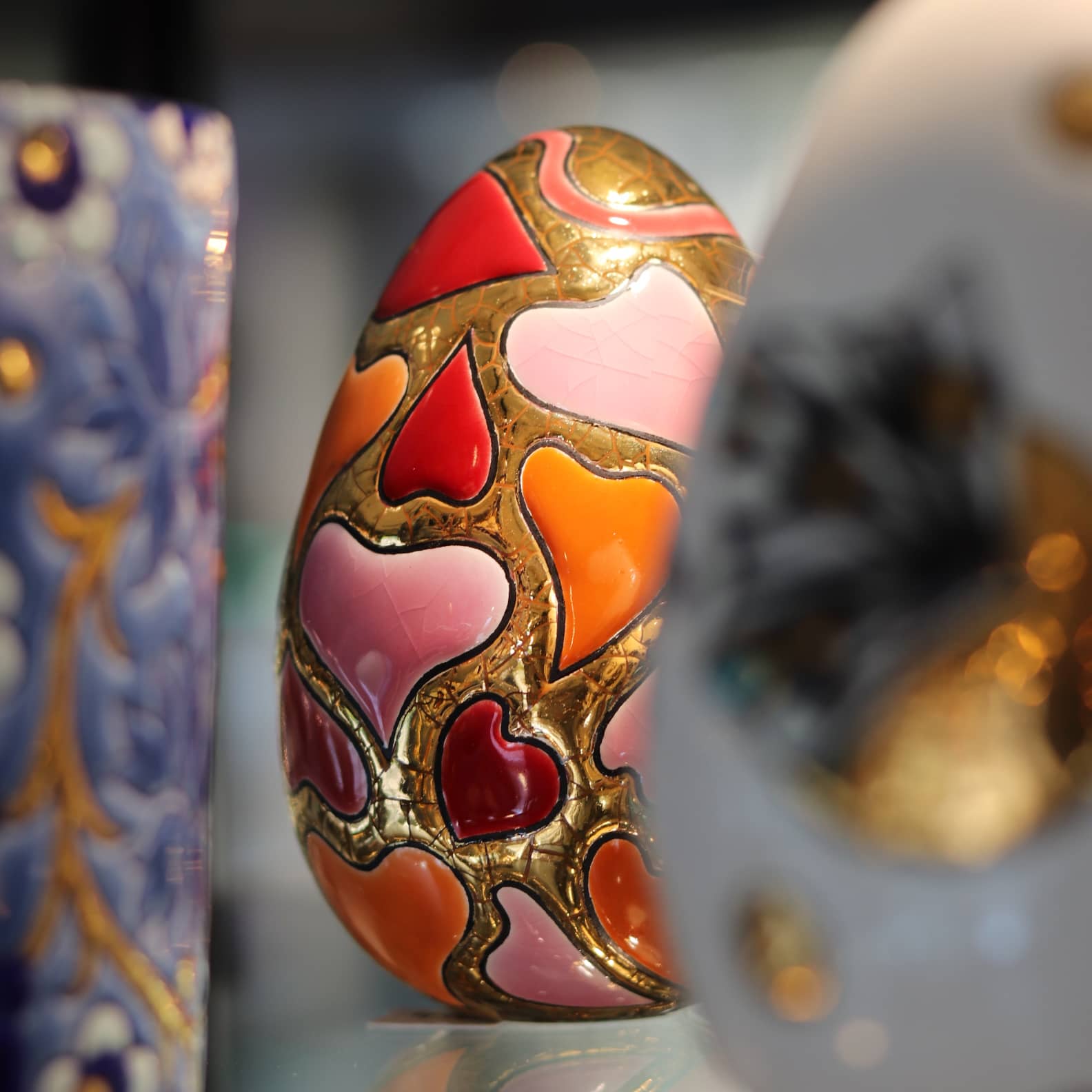 Découvrez l’Œuf sweat heart taille 2 Émaux de Longwy par Catherine Lhoir.