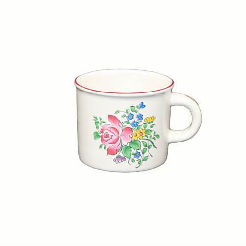MINI MUG REVERBERE FAIENCE, Faïenceries de Lunéville et Niderviller, Manufactures fondées en 1735, Mini mug Reverbere . Le Lunéville, tulipes et roses en bouquets chatoyants. Le charme de nos maisons et l’authenticité d’un décor toujours très actuel. Mini muf faïence de Lunéville, Mini mug faïence décor rose, Mini mug faïence décor ancien.