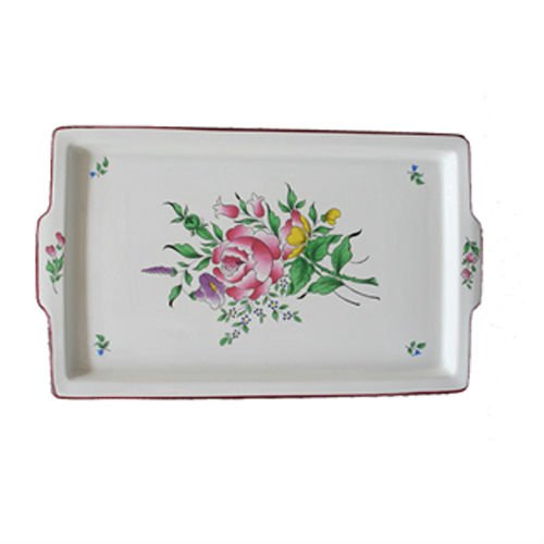 PLATEAU RECTANGULAIRE PM FAIENCE, Faïenceries de Lunéville et Niderviller, Manufactures fondées en 1735, Plateau rectangulaire pm Reverbere . Le Lunéville, tulipes et roses en bouquets chatoyants. Le charme de nos maisons et l’authenticité d’un décor toujours très actuel. Plateau faïence de Lunéville, Plateau faïence décor rose.