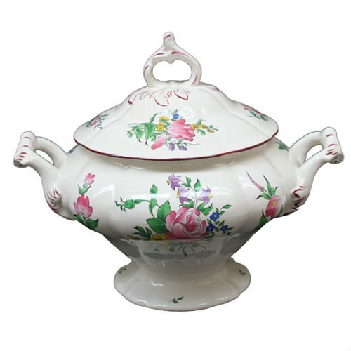 SOUPIÈRE RENAISSANCE LXV FAÏENCE, Faïenceries de Lunéville et Niderviller, Manufactures fondées en 1735, Soupiere renaissance LXV Reverbere . Le Lunéville, tulipes et roses en bouquets chatoyants. Le charme de nos maisons et l’authenticité d’un décor toujours très actuel.