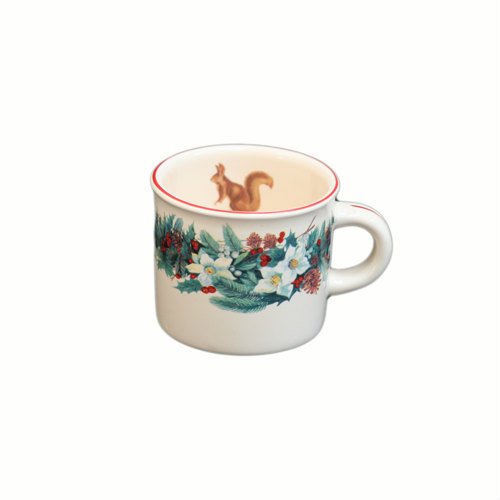 MINI MUG NOËL FAÏENCE NIDERVILLER, Faïenceries de Lunéville et Niderviller, Manufactures fondées en 1735, Mini Mug Roses des Neiges. Guirlande de pins et fleurs, toutes les senteurs de Noel au rendez-vous. Mug roses des neiges en faïence de Niderviller, Mug en faïence décoration hivernale, Mug en faïence motif houx.