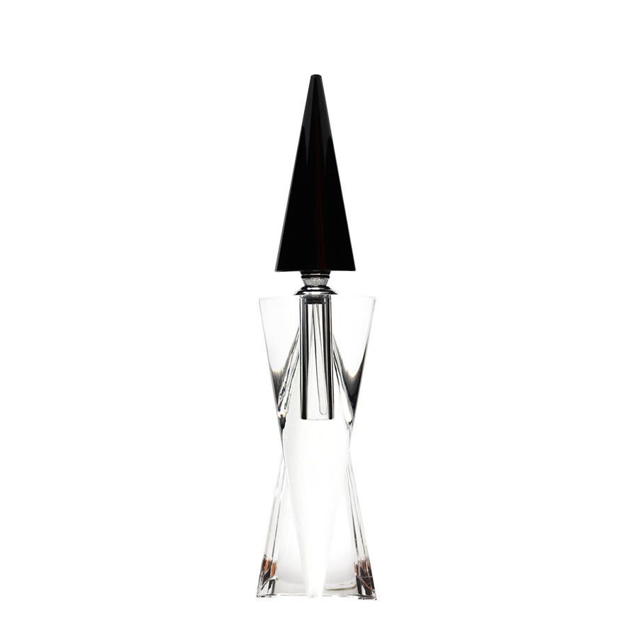 Flacon à parfum en cristal clair et noir. Ce flacon vous accompagnera tant sur le plan décoratif qu’utilitaire. En effet, vous avez la possibilité d’insérer votre parfum à l’intérieur, une tige en cristal vous permet de déposer votre parfum sur les endroits souhaités.