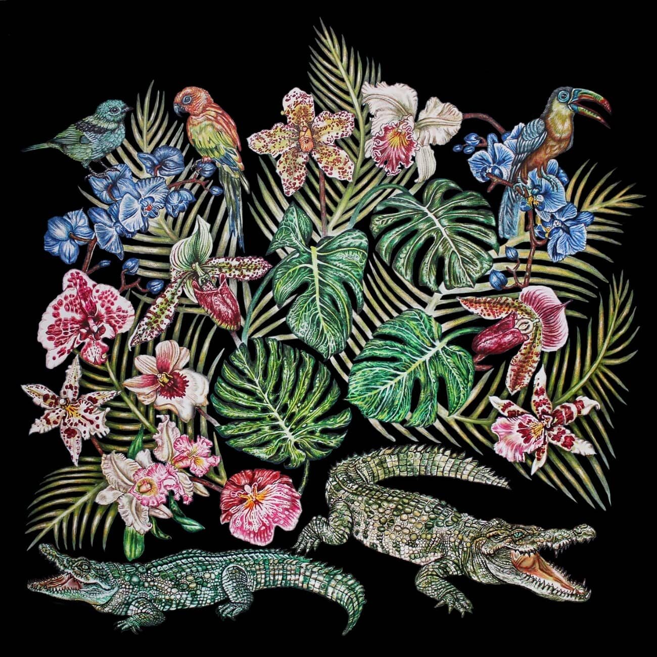 Découvrez le foulard Lalique By Ginny Litscher Dessin Jungle Noir.