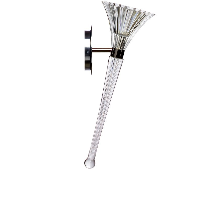 MILLE NUITS APPLIQUE MURALE BACCARAT, Iconique comme la flamme olympique, la Torchère Mille Nuits est une vibrante corolle de cristal clair taillé. Couronnant un long support de cristal accentué d’éléments métalliques, elle illustre l’exceptionnel savoir faire des maîtres verriers de Baccarat. Superbe et classique, elle s’intègre à tous les intérieurs. Créée par Mathias pour Baccarat, la collection Mille Nuits fait référence à l’univers des contes orientaux. Elle se décline en divers autres luminaires (des candélabres aux lustres) ainsi qu’en accessoires de bar et de table (des flûtes à champagne aux assiettes). Applique Mille Nuits Mathias Baccarat, Applique orientale cristal Baccarat.
