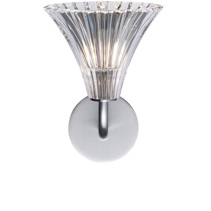 MILLE NUITS APPLIQUE TULIPE BACCARAT, L’applique pivote sur 180 degrés, dirigeant ainsi le faisceau lumineux vers le plafond ou vers le sol. La forme de la coupelle en cristal et la taille en biseaux assurent une parfaite diffusion de la lumière. L’applique Tulipe existe en cristal clair, et cristal rouge Baccarat. Créée par Mathias pour Baccarat, la collection Mille Nuits fait référence à l’univers des contes orientaux. Elle se décline en divers autres luminaires (des candélabres aux lustres) ainsi qu’en accessoires de bar et de table (des flûtes à champagne aux assiettes). Applique murale tulipe en cristal par Mathias.