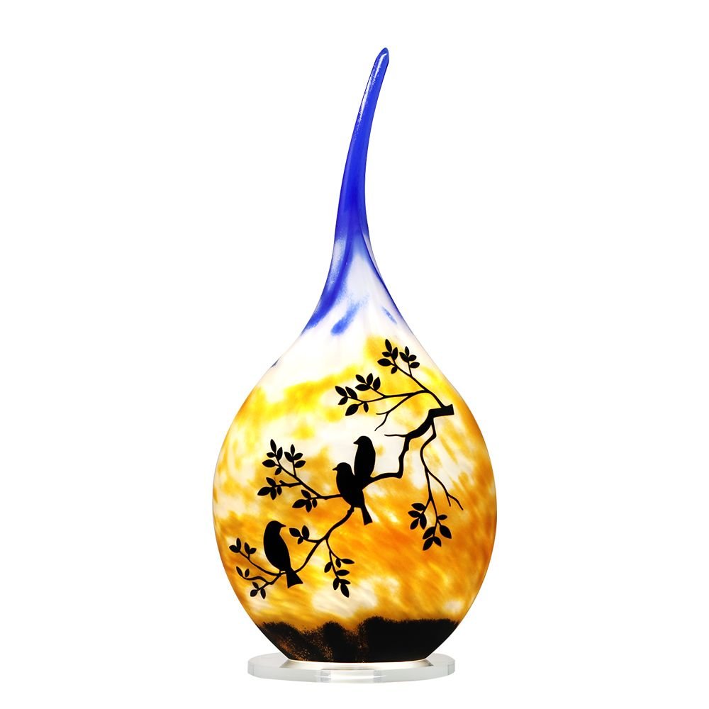 Découvrez cette lampe unique en cristal Art Nouveau. Symbole du naturalisme et du renouveau des arts décoratifs français, plusieurs couches de verres sont nécessaires pour arriver à ce résultat. Un aspect sablé mat apporte une touche contemporaine à la pièce.