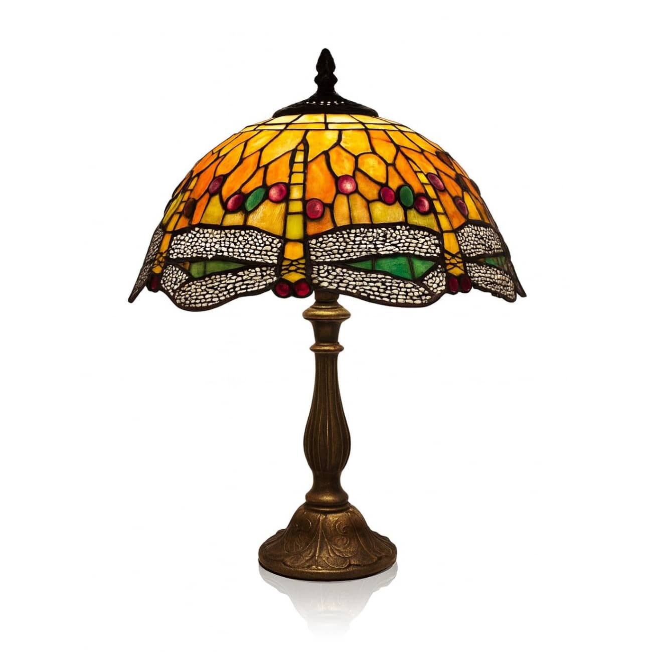 Découvrez cette lampe en verre vitrail libéllule ambre.