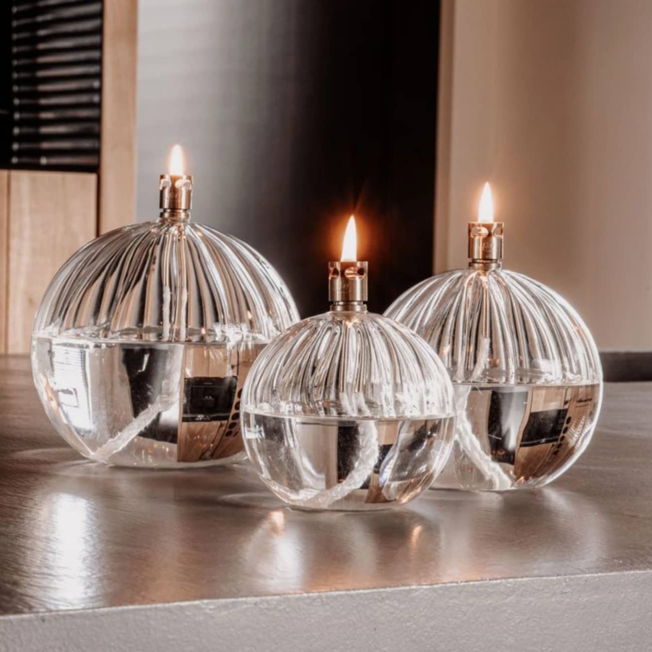 Nouveau modèle, la lampe à huile élégance se pare de côtes vénitiennes.