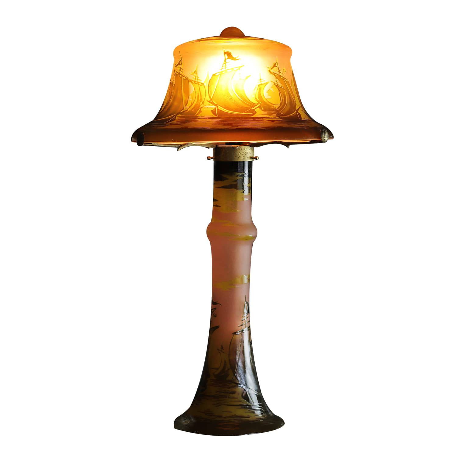 Lampe pâte de verre Tip Gallé décor bateaux