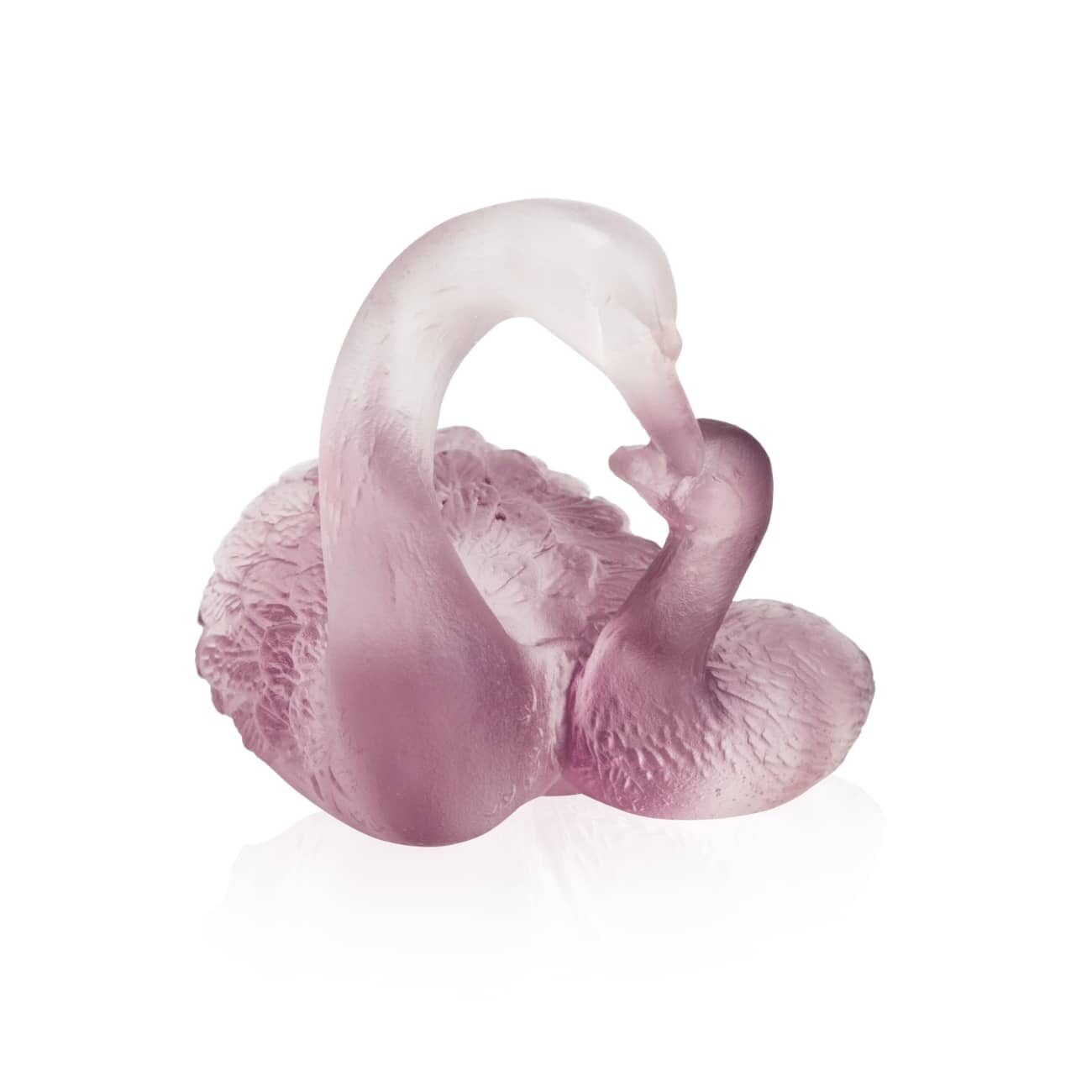 COUPLE CYGNES ROSE DAUM, sculpture artistique représentant un symbole fort : l’amour de deux animaux, le couple de cygnes existe en deux couleurs : bleu et rose. Pièce unique, signée Daum France. Longueur: 7 cm. Sculpture cygne amour en pâte de cristal Daum, Couple cygnes en cristal rose.