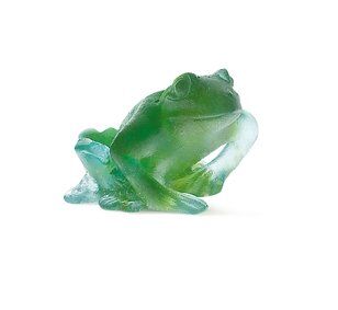 GRENOUILLE VERTE DAUM, La grenouille Daum est sublime. Une couleur puissante et intense, des nuances de couleurs uniques pour chaque pièce. La grenouille porte son enfant près d’elle, une relation d’amour immortalisée dans le cristal.