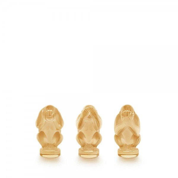 LA SAGESSE 3 SCULPTURES SINGES LALIQUE, L’année 2016 est celle du signe dans le calendrier chinois. Lalique présente le coffret de la sagesse, avec trois superbes sculptures singes, le singe muet, le singe sourd, le singe aveugle. Chaque sculpture est signée Lalique France, fabriquée en France.