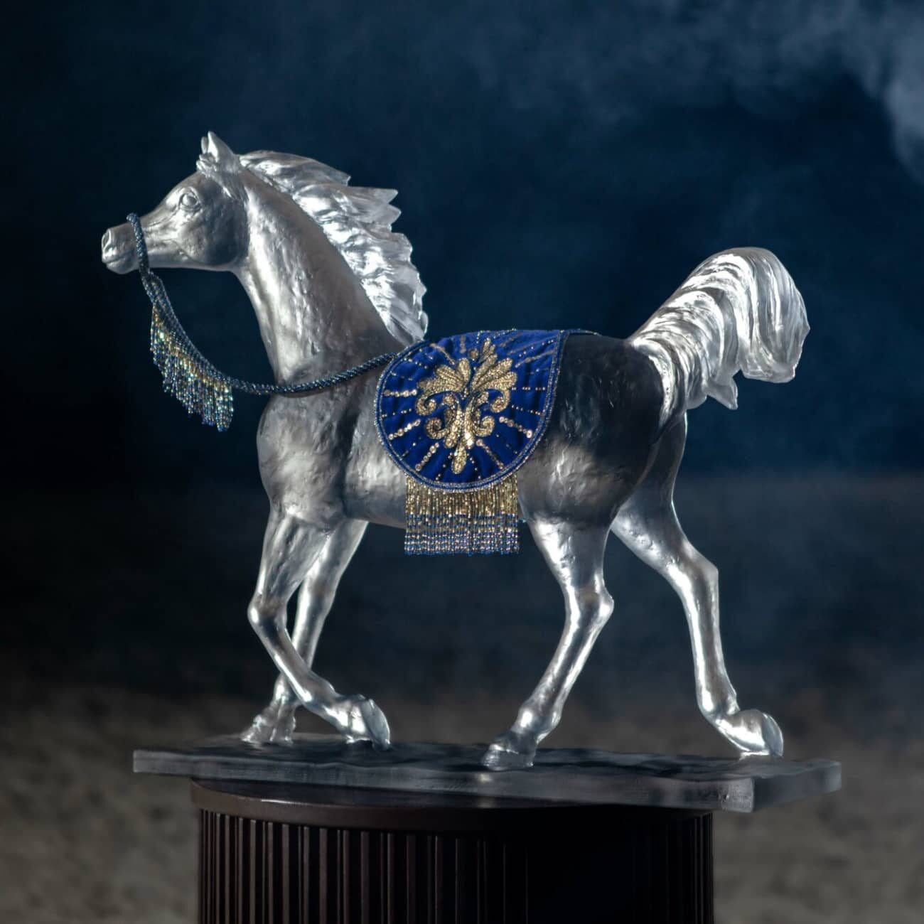 Daum dévoile Le Majestueux Impérial, une ode à la noblesse du pur-sang arabe, sculpté dans un cristal blanc-gris aux reflets vaporeux et paré d’un tapis brodé d’or, né des mains expertes de la Maison Vuillaume. Entre lumière et matière, cette création rare célèbre la grâce, la force et l’art sous sa forme la plus précieuse.