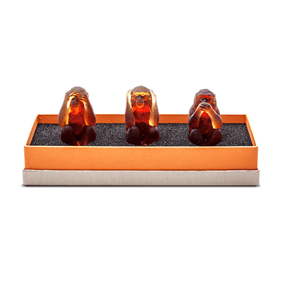 Découvrez les trois singes de la sagesse Daum, dont chacun se couvre une partie différente du visage avec les mains : le premier les yeux, le deuxième la bouche et le troisième les oreilles.