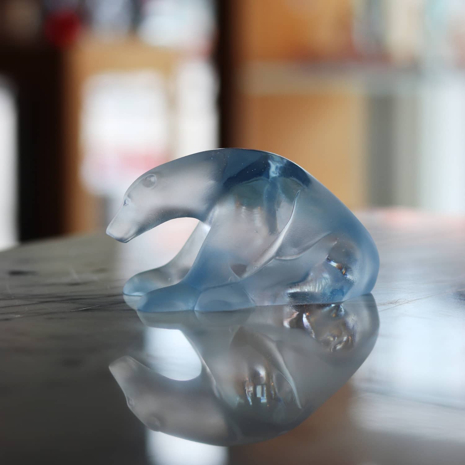 OURS POLAIRE DAUM, pièce signée Daum France, longueur : 10 cm. Sculpture ours polaire en cristal Daum, Sculpture ours polaire en pâte de cristal Daum.