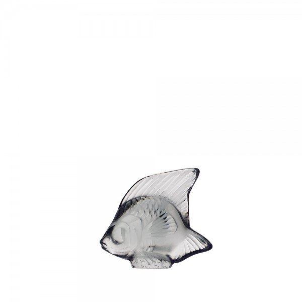 POISSON CRISTAL GRIS LALIQUE, Né en 1913 sous le crayon de René Lalique, la sculpture Poisson est devenu une pièce emblématique de l’univers Lalique. Turquoise dans sa première édition, il s’est doté de nouvelles couleurs au fil de ses rééditions.