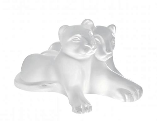 SCULPTURE LIONCEAUX TAMBWEE LALIQUE, Lalique vous invite dans la savane africaine à célébrer la naissance des lionceaux Tambwee. Ces 2 jeunes lionceaux espiègles, créés par Marie-Claude Lalique en 1990, seront amenés à gouverner la terre des lions. Magnifiés par le cristal, les Lionceaux Tambwee se lovent l’un contre l’autre; un symbole de fraternité.