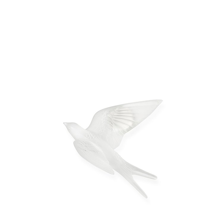 La nouvelle collection Lalique 2018 portera ainsi à son apothéose l’univers créatif de René Lalique à travers l’allégorie des hirondelles. Les pièces seront métamorphosées par le geste des brillants artisans de la cristallerie de la Maison Lalique. Sculptées dans le cristal satiné repoli, emblématique de Lalique, les hirondelles virevolteront avec allégresse et emporteront notre regard fasciné.