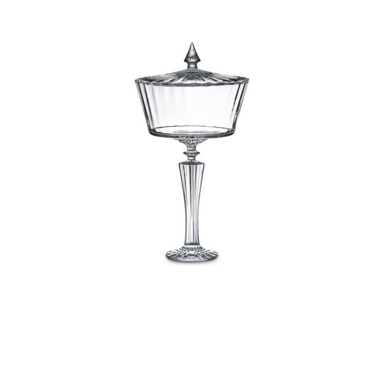 MILLE NUITS BONBONNIERE HAUTE BACCARAT, La bonbonnière haute Mille Nuits en cristal clair est rythmé de subtiles côtes vénitiennes sur toute sa paraison et évoque la poésie des contes d’orient.