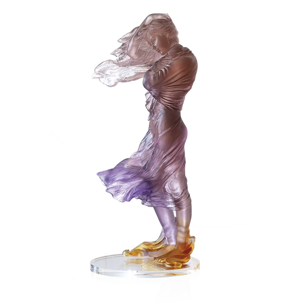 Délicate, attentive, subtile… Luo Li Rong est un prodige de la sculpture, honorée tant dans son pays d’origine, la Chine, qu’en France et en Belgique où elle commence à travailler en 2005. Pour elle, « les yeux sont la fenêtre de l’esprit », aussi s’attache-t-elle particulièrement à fixer leur expressivité dans ses œuvres d’argile, délicates et libres, où les drapés subliment les corps graciles et fiers de ses modèles féminins, Tanagra modernes et emprunts d’une ineffable éternité. Avec Daum, elle incarne dans le cristal « Vent léger », personnification féminine de la grâce et de la tranquilité, aux chaudes couleurs d’un ambre solaire.