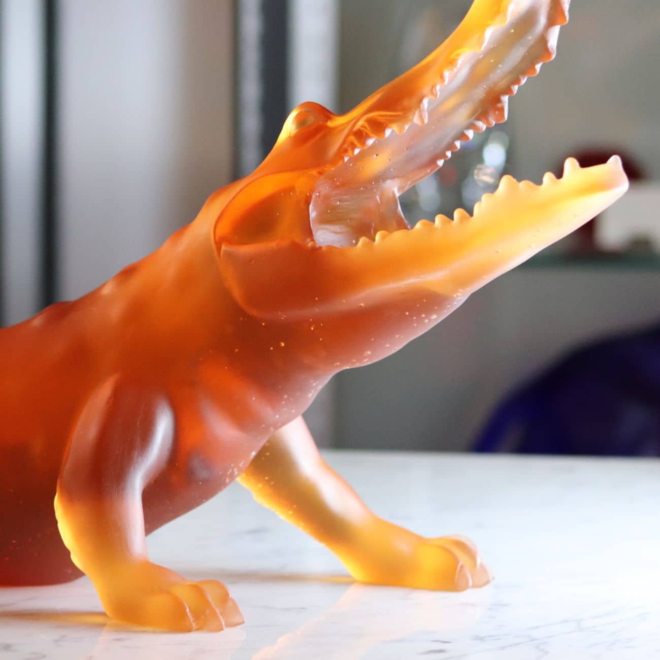 Découvrez le crocodile en pâte de cristal orange, de la manufacture Daum en collaboration avec Richard Orlinski. Une oeuvre d’art limitée à 99 exemplaires.